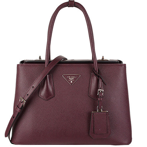 PRADA SAFFIANO CUIR 轉釦手提/肩背兩用包(小/酒紅)